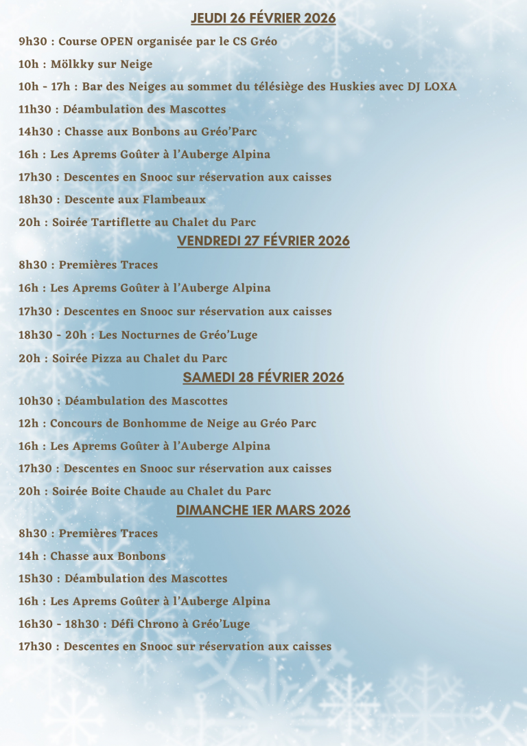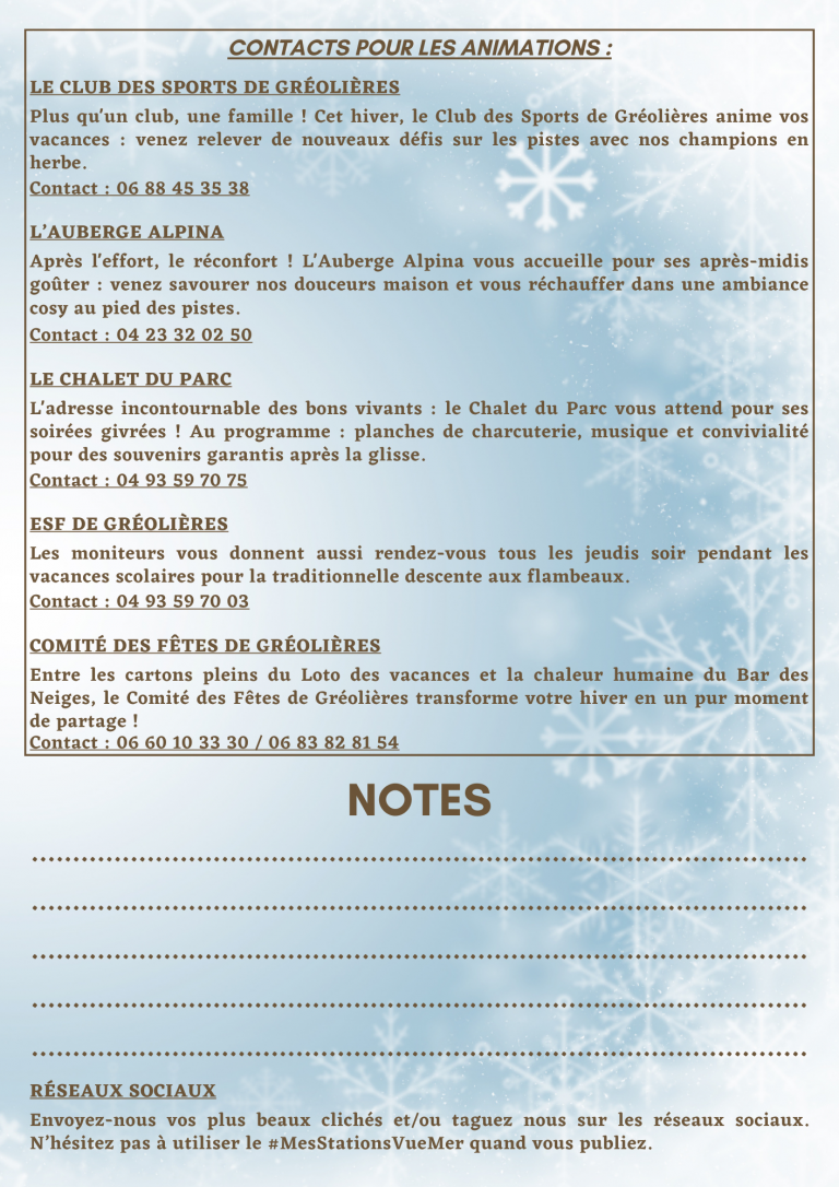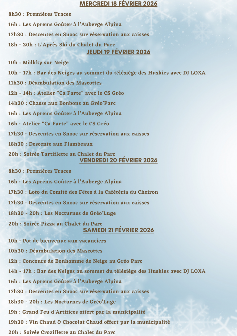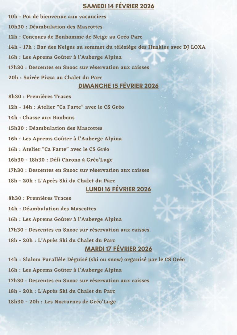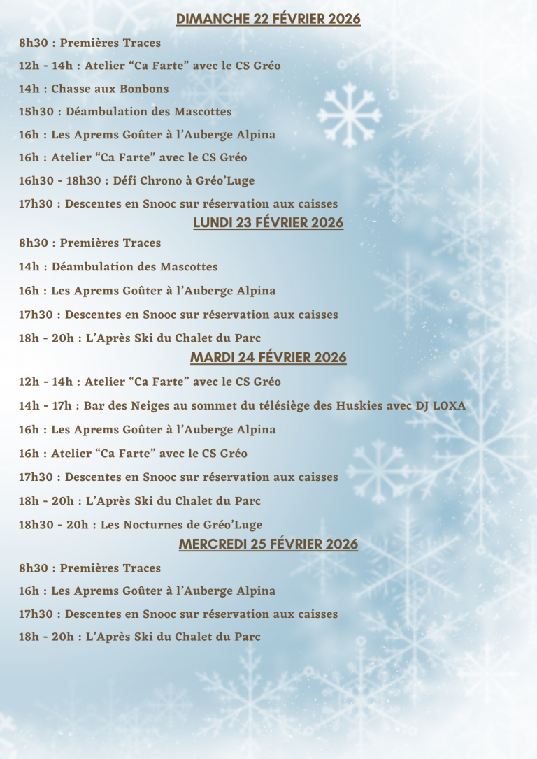 Programme des animations